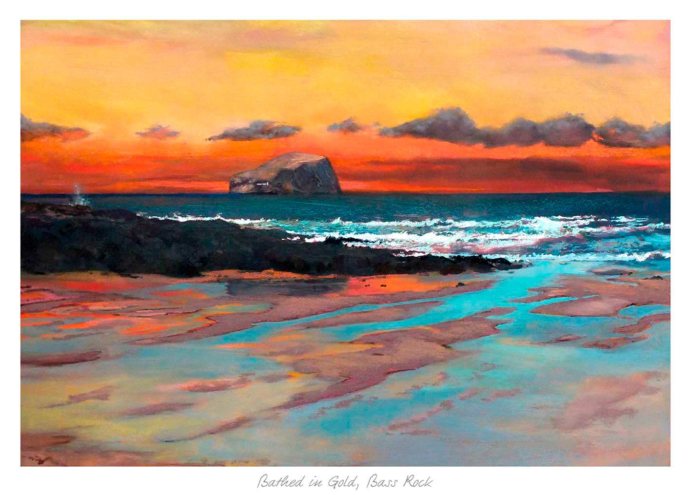Bathed in Gold Bass Rock Framed Fine Art Giclée Print by Margaret Evans.