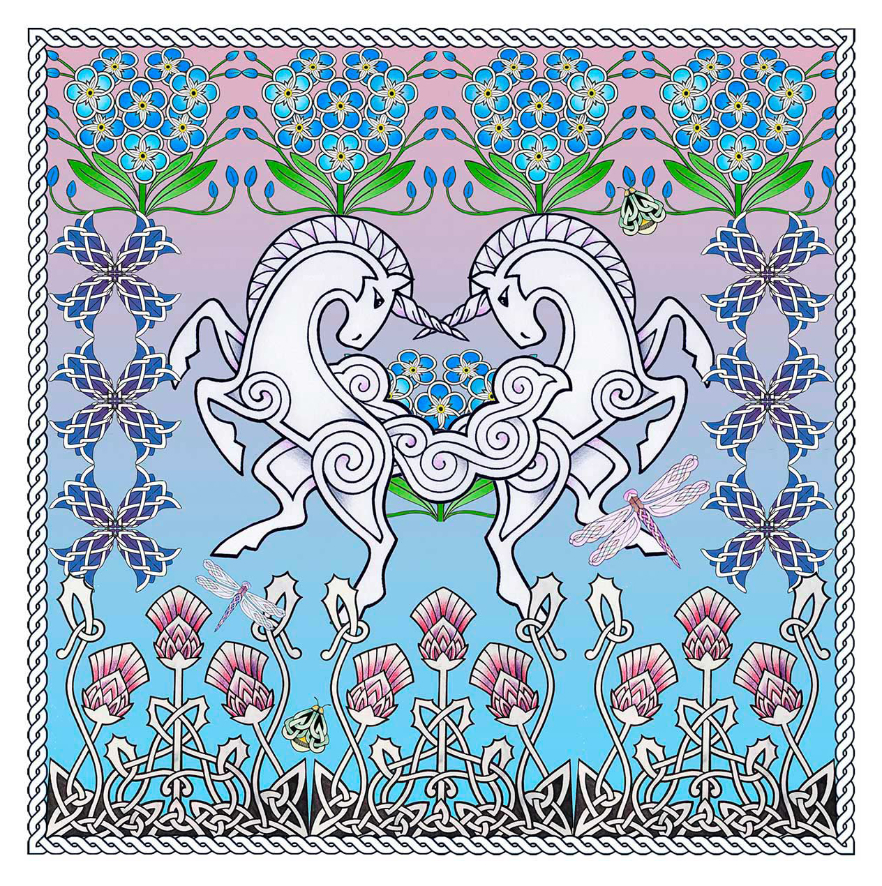 Celtic Unicorns Framed Fine Art Giclée Print by Marjory Tait.