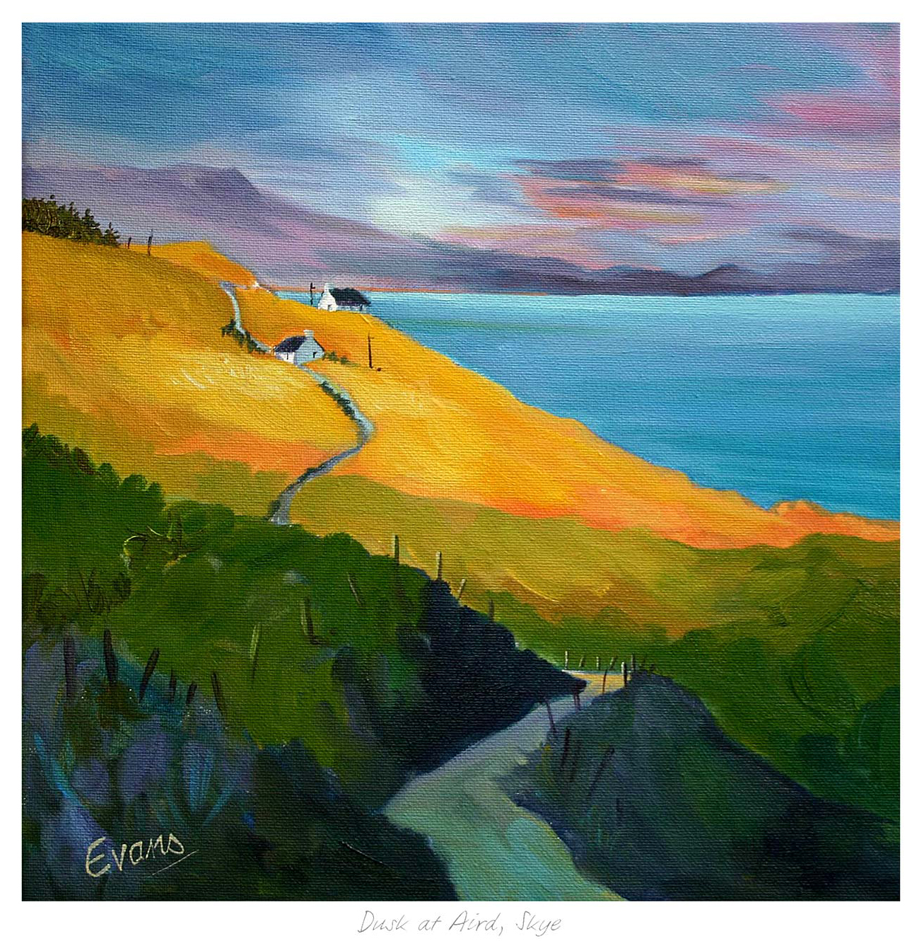Dusk at Aird, Skye Framed Fine Art Giclée Print by Margaret Evans.