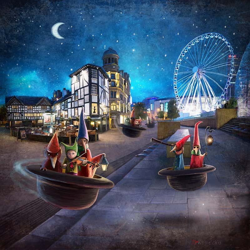 Midnight Tour, Manchester Framed Fine Art Giclée Print by Matylda Konecka.