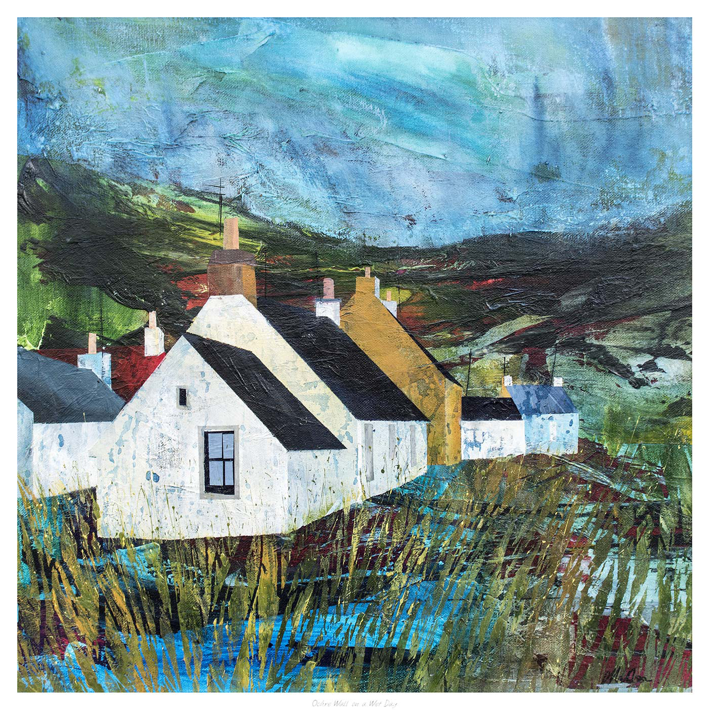 As a graduate of the Winchester School of Art her distinctive textural style emanates boldness, vibrancy, and atmosphere. Based in her studio at Inverness Creative Academy, she works in both oils and mixed-media and her unmistakably personal landscapes capture the uncompromising essence of the North. Her work is materials led. Experimental mark-making and a creative use of materials is derived from her training in textiles and as Senior Designer for Courtaulds Knitwear. To combine this approach with the imagery of her surroundings can be unpredictable and challenging. “The process is as exciting as the outcome…. I am always looking for visual elements that interest me which build in my subconsciousness like a virtual sketchbook”.
