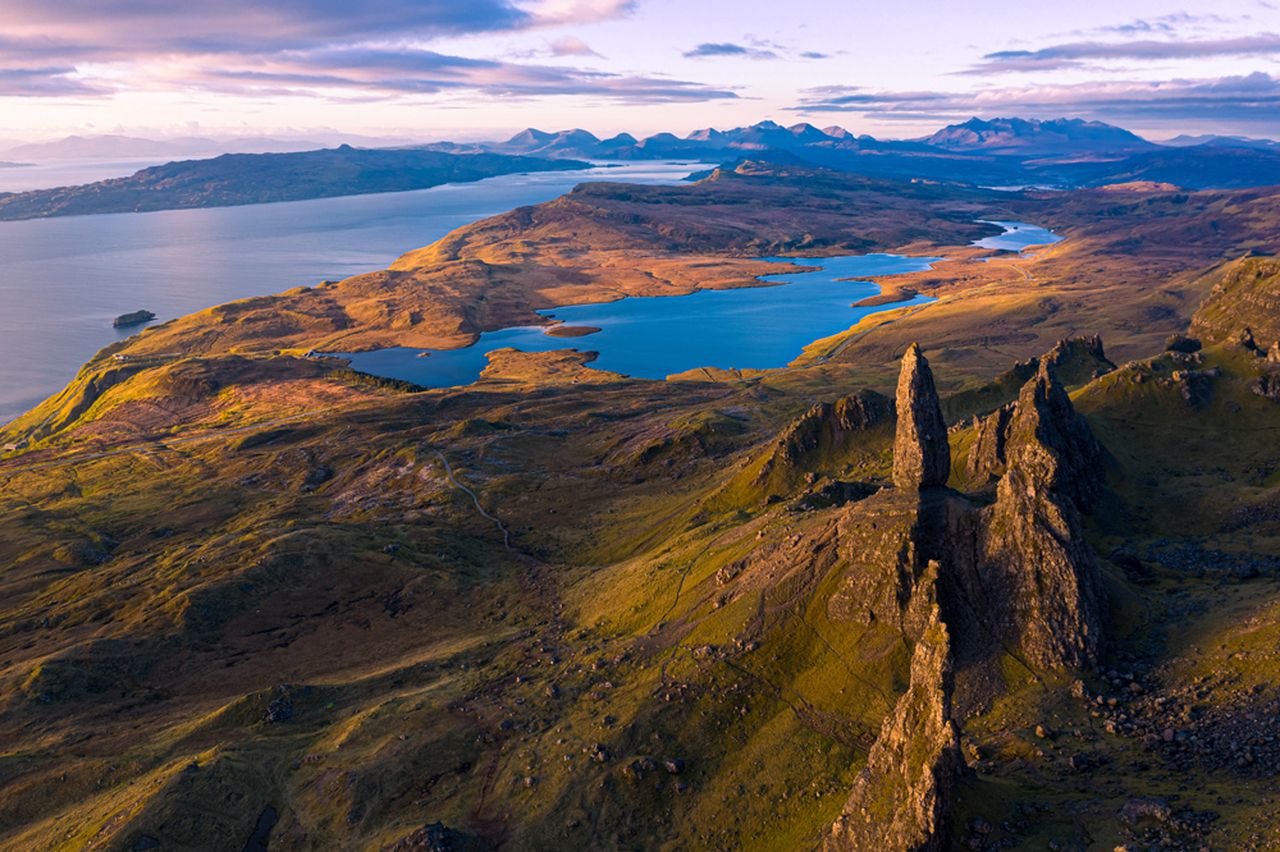 Old Man of Storr with the Black Cuillin mountains