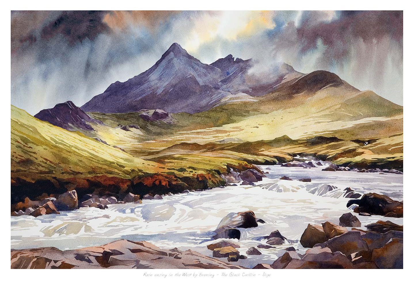 Rain, easing in the West by evening, The Black Cuillin, Skye Framed Limited edition Fine Art Giclée Print by Peter McDermott.